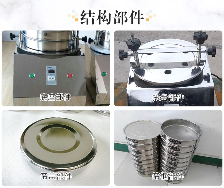 3、把標準篩框按孔徑從小到(dao)大,從下到(dao)上(shang)依次疊(die)放到(dao)篩框底座上(shang)。