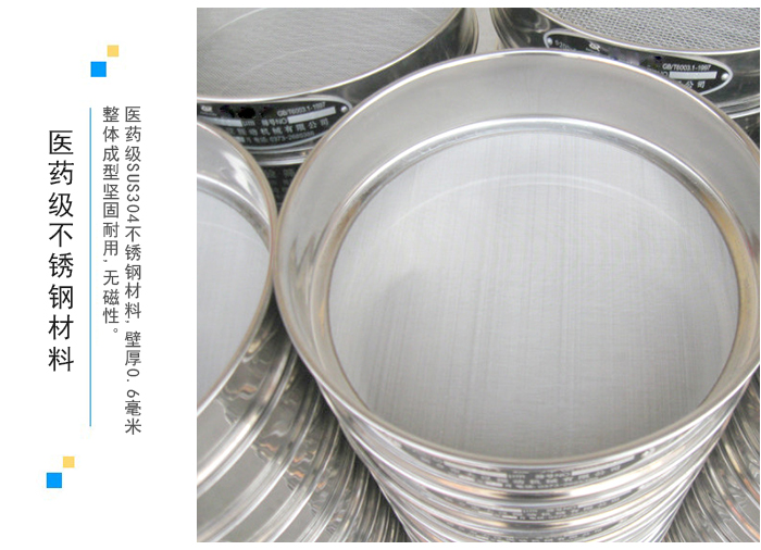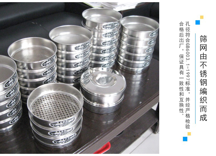 3、篩網為(wei)不銹(xiu)鋼編織(zhi)網,網眼符合(he)GB6003.1-1997標準,經(jing)工具顯微鏡、投(tou)影儀等設備檢驗合(he)格后使(shi)用,可(ke)確保藥典(dian)同(tong)型號標準任(ren)何時候(hou)產(chan)生的篩子都具有一致性(xing)和相互性(xing)。