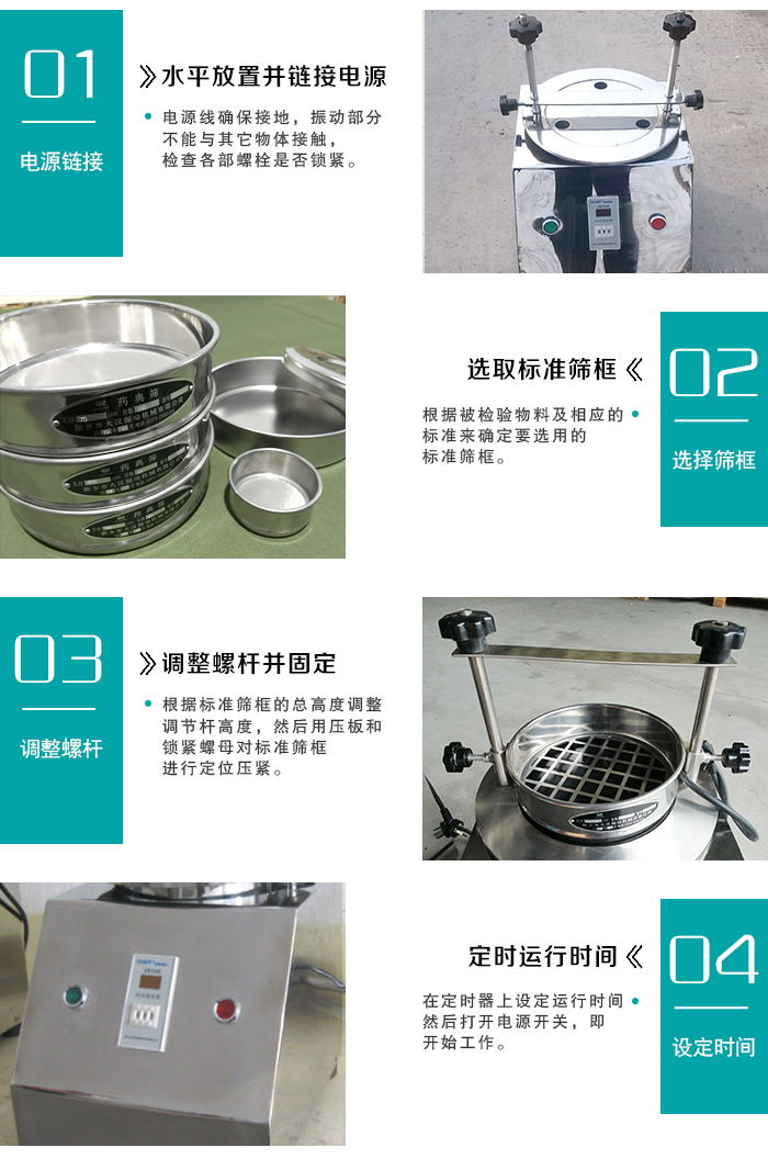 5、根據物料性質及投料量,在定時器上設定運行時間,然后打開電源開關,標準試驗篩即開始工作。