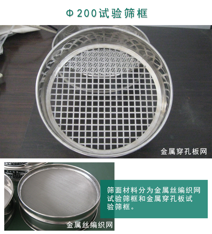 Φ200試驗篩(shai)(shai)框(kuang)(kuang)根據篩(shai)(shai)面(mian)材(cai)料分(fen)為(wei)金屬(shu)絲編(bian)織(zhi)網(wang)試驗篩(shai)(shai)框(kuang)(kuang)和金屬(shu)穿孔板試驗篩(shai)(shai)框(kuang)(kuang)。金屬(shu)絲編(bian)織(zhi)網(wang)試驗篩(shai)(shai)框(kuang)(kuang)采用(yong)(yong)標準GB/T6003.1-1997生產。其網(wang)孔基本尺(chi)寸為(wei)2.36mm-0.038mm,符合(he)行業標準3310-1:1990 R20/3,R20,R40/3系列,篩(shai)(shai)網(wang)材(cai)質為(wei)316L材(cai)質、304不銹鋼材(cai)質制作。金屬(shu)穿孔板試驗篩(shai)(shai)采用(yong)(yong)國家標準GB/T6003.2-1997,符合(he)行業標準3310-2:1990 R20/3、R20、R40/3系列,篩(shai)(shai)網(wang)材(cai)質為(wei)紫銅,并采用(yong)(yong)電化學加工(gong)而成。