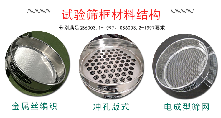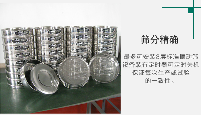 4、沖孔板試驗篩,按GB6003.2-1997標準加工。符合國際標準ISO3310-2:1990 R20/3,R20,R40/3系列。同時我公司也生產與φ200標準試驗篩配套的拍擊式試驗篩機、標準篩機。拍擊式試驗篩機、標準篩機符合標準(zhun),多可(ke)安裝8層標準(zhun)振動篩,設(she)備裝有定時器可(ke)定時關機,保證每次生產或(huo)試驗的一致性。