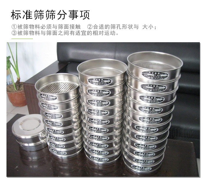 5、沖孔板試驗篩,按GB6003.2-1997標準加工。符合國際標準ISO3310-2:1990 R20/3,R20,R40/3系列。同時我公司也生產與φ200標準試驗篩配套的拍擊式試驗(yan)篩(shai)機(ji)(ji)、標(biao)準篩(shai)機(ji)(ji)。拍擊式試驗(yan)篩(shai)機(ji)(ji)、標(biao)準篩(shai)機(ji)(ji)符合國家標(biao)準,可安裝(zhuang)8層標(biao)準振(zhen)動篩(shai),設備裝(zhuang)有定時器可定時關機(ji)(ji),保證每次(ci)生產或(huo)試驗(yan)的一致性。